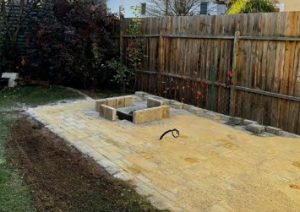 Abb. 5: Einschalung für Sohlplatte und Ringfundament mit den in Eigenarbeit verlängerten Pfostenträgern