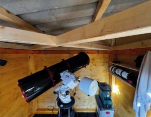 Die Situation führte auch bei mir zu dem Wunsch, das Teleskop mit einem Gebäude zu schützen und eine kleine Sternwarte zu bauen. Nach längeren Recherchen im weltweiten Netz bin ich auf einen schönen Selbstbau aus einer Gartenhütte an der schottischen Küste gestoßen.