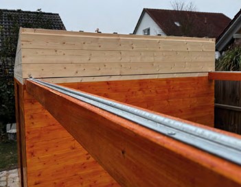 Abb.2: Die Trägerkonstruktion des Daches aus Lärchenholz mit dem Alu-U-Profil als Laufschiene