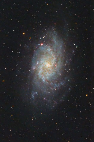 Da die Dachfläche unseres Reihenhauses nach Südwest (235 Grad) ausgerichtet ist und ein Dachfenster bereits vorhanden war, das jedoch fotografische Arbeiten mit einem Teleskop nur äußerst begrenzt zuließ, entschloss ich mich zum Einbau eines Glasschiebefensters, bei dem sich drei Glaselemente elektrisch nach unten zusammenschieben ließen. Die Herstellerfirma im Westerwald wurde leider nach Überweisung der Anzahlung insolvent und damit auch mein Vorhaben hinfällig. Aber einmal auf den Geschmack gekommen, ließ mich die Sache nicht mehr los. Und so plante ich eine Dachgaube über drei Sparrenfelder. Mehr lässt die Statik nicht zu. Die Dachgaube sollte eine Neigung von nur 5 Grad haben und oben das breiteste erhältliche Klapp-/Kippfenster von Velux aufnehmen. Vorne sollte ein nach außen sich öffnendes Kippfenster hergestellt und eingepasst werden. Dabei musste der vordere Rahmenbalken des oberen Kippfensters ausgesägt und auf das vordere Kippfenster montiert werden, so dass beim Öffnen beider Fenster nach außen eine große Öffnung ohne störenden Rahmen entsteht. Zunächst baute ich mir ein kleines Holzmodell (Abb.1). Mit diesem Modell und einem Plan 1:10 suchte ich einen Dachdecker und einen Schreiner auf. Mit großer Überredungskunst musste ich beide von meinem ungewöhnlichen Vorhaben überzeugen. „Wie soll denn ein sich nach außen öffnendes Dachfenster mit nur dreiseitigem festen Rahmen dicht werden?“ waren die Einwände. Aber schließlich ging es an die Ausführung. Die breite Dachgaube erforderte einen großen einen „Wechsel“ und eine Verstärkung der beiden angrenzenden Dachsparren. Den unteren Querbalken des Einbaurahmens des oberen Klapp-/Kippfensters musste ich beim Schreiner eigenhändig mit einer Japansäge beherzt aussägen, weil der Meister der Sache nicht traute und die Verantwortung dafür nicht übernehmen wollte. Es hat alles gut geklappt. Das mit Gehrung ausgesägte Rahmenstück wurde auf das vordere Kippfenster geschraubt. Dadurch entstand eine freie Öffnung von 140 cm x 107 cm. Es war das Meisterwerk des Dachdeckers, dass die ganze Sache völlig regen- und winddicht wurde! Die beiden Fenster lassen sich gleitend voll öffnen und einwandfrei gegeneinander verriegeln (Abb.2). Nach Fertigstellung der Dachgaube ging es an die Montierung des Teleskops. Die genaue Position der Montierung musste ich durch Versuche ermitteln, damit sich auch ein 8“-Newton innerhalb der doch beengten Dachgaube bewegen lässt. Eine leere auf 120 cm abgesägte Sauerstoffflasche mit 230 mm Durchmesser dient als Säule, ein passend gedrehtes Innenrohr als Hubzylinder. Darauf befestigte ich meine Saturn-Montierung. Das Innenrohr kann mit einem elektrischem OKIN Linear-Hubmotor (für ein Garagentor) auf eine Gesamthöhe der Säule von 155 cm ausgefahren werden. Damit kommt das Teleskop über den oberen Fensterrahmen (Abb. 3). Die Stahlsäule wurde ich einem Vierfußständer befestigt, der mit vier 12 mm Gewindestangen durch den Estrich in der Betondecke verankert war. Die Betondecke ruht an dieser Stelle auf der am Balkon zurückliegenden Hauswand, so dass eine Schwingung des Bodens weitgehend vermieden wird. Das Dreh-/Kippfenster kann durch eine besondere Vorrichtung über die Senkrechte hinaus arretiert werden, so dass auch eine Beobachtung der Polarregion direkt über dem Dach unterhalb des Fensters möglich ist (Abb. 4). Mit einem isolierenden dicken Vorhang wurde die Astrogaube zum Zimmer hin abgetrennt (Abb. 5). Vor einer Beobachtungsnacht öffne ich das Dachfenster, schließe den Vorhang und lasse meine Astrogaube so weit wie möglich sich der Außentemperatur anpassen. Auch im Winter bei Minustemperaturen gelingt das bis auf drei Grad Temperaturdifferenz, ohne dass es im meinem Zimmer unangenehm kalt wird. Natürlich habe ich alle Heizkörper immer abgestellt. Neben dem Vorhang steht mein Arbeitstisch mit PC, auf dem ich die Bilder empfange und speichere. Die Steuerung der Montierung vom PC aus ist mir zu heikel, da das Teleskop in der leider engen Gaube nur auf Sicht bewegt werden sollte. Nach Beendigung der Beobachtungsnacht wird die Säule eingefahren, die Montierung in Parkposition gebracht, das obere Dreh-/Kippfenster mit einer Stange heruntergezogen und die beiden Fenster gegeneinander geschlossen. Sollte es mal besonders „früh“ werden, bietet sich ein im Zimmer stehendes Gästebett noch für eine kurze Nachtruhe an, ohne dass die Ehefrau durch das „nächtliches Treiben“ allzu sehr gestört wird. Der 8-Zoll-Newton erwies sich auf der Stativsäule als völlig ungeeignet, so dass er durch einen 8-Zoll-Ritchey-Chrétien von GSO ersetzt wurde. Inzwischen habe ich die alte Saturnmontierung durch eine EQ8 von Skywatcher ersetzt und den 8-Zöller auf einen 10-Zoll-RC von GSO aufgerüstet. Auf diesen dicken Tubus ließ sich aber das Leitrohr wegen der schmalen Gaube nicht mehr aufsatteln. Ich habe zur Aufnahme des Leitrohres zwei beidseitig abgewinkelte Bleche an der Basisschiene (Losmandy) des Teleskops angeschraubt und links und rechts mit je einer Vixenschiene verbunden. Damit kann das Leitrohr sowohl links als auch rechts unten neben dem Tubus verschiebbar angeklemmt werden. Dadurch wird auch eine bessere Lastenverteilung erreicht. Übrigens: die EQ8 läuft nach Einscheinern so präzise, dass auch bei großen Brennweiten Aufnahmen bis zu 3 Minuten ohne Guiding möglich sind. Die Ausführung der Arbeiten war nur möglich, weil mir freundliche Firmen bei der Metallbearbeitung (Drehen, Fräsen, Schweißen) mit viel Verständnis entgegengekommen und meine ausgefallenen Wünsche oft zum Freundschaftspreis erfüllt haben. Dabei konnte ich auch feststellen, dass sich meine Begeisterung für mein doch nicht alltägliches Hobby positiv auswirkte. Leider haben wir hier in Hennef (Sieg) (60 m ü. NN) wegen der Nähe zu Bonn und Köln, dem Flughafen Köln-Bonn und der Siegniederung nicht den besten Voraussetzungen für Himmelsbeobachtung und Astrofotografie. Aber d
