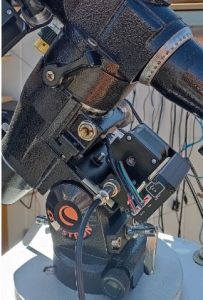 Dieses schien für mich machbar zu sein, weil es einen fertigen Bausatz für diese Montierung im Handel dazu gibt. Den passenden Bausatz für beide Achsen bekommt man bei der Firma AliExpress (schnell im Internet googeln …) oder auch bei eBay. Der Bausatz OnStep umfasste alle erforderlichen Komponenten inklusive der Steuerungsbox und Kabel für den Anschluss des Tablets oder Laptops. Onstep ist von dem chinesischen Hersteller Terrans Industry. Ich habe die Lite-Version für exos2- bzw. EQ5-Montierungen eingesetzt (baugleich). Nachdem die Bauteile eingetroffen waren, habe ich den bestehenden Antrieb von meiner Advanced-GT-Montierung einfach abgebaut und verkauft (Abb. 1). Die OnSt ep-Bauätze mussten dann nur noch mit jeweils einer Schraube an die Plätze der zuvor demontieren Antriebe verschraubt werden. Die Konsolen der neuen Antriebe konnten ohne zusätzlichen Aufwand mit den vorhandenen Bohrlöchern montiert werden. Im nächsten Schritt wurden die Zahnriemenscheiben und die Riemen montiert (Abb. 2). Die Motorhalterungen sind in Langlöchern verschraubt, so dass die Riemen einfach zu spannen sind (Abb. 3). Unterstützung zur Montage fand ich durch ein entsprechendes Tutorial bei Youtube [2] und in den entsprechenden Internetforen [3]. Ich war echt erstaunt, wie gut die Antriebe funktionieren. Die mitgelieferte kleine Steuerung kann man sowohl über WiFi (wireless fidelity) [4] als auch über Bluetooth und USB mit den Endgeräten verbinden (Abb. 4). Ich bin mit der Funktion sehr zufrieden, das Alignment funktioniert einwandfrei und die Objekte lassen sich einfach ansteuern. Zu dem Antrieb wird auch eine entsprechende Software zur Verfügung gestellt. Die Bedienung ist für meinen Geschmack etwas gewöhnungsbedürftig. Mit etwas Übung komme ich damit jetzt auch gut zurecht. Insgesamt hat sich die Investition von ca. 120 Euro sehr gelohnt. Meine kleine Sternwarte ist für mich wieder etwas attraktiver geworden. Begleitet wurde der Umbau durch Diskussionen und Anregungen in der Signal-Gruppe der VdS-Fachgruppe Amateurteleskope/Selbstbau [5] Autor: Roland Wiemann Literatur- und Internethinweise (Stand 22.05.2025): [1] R. Wiemann, 2021: „Meine Low-Budget-Sternwarte“, VdS-Journal für Astronomie 76 (1/2021), S. 67-69; https://selbstbau.vdsastro.de/gebaeude#Wiemann [2] N. Ye: „Onstep EXOS2 v4 lite Telescope Controller Install instructional“, Youtube-Tutorial, www.youtube.com/watch?v=KCLHg1gu6eM [3] groups.io wiki, Diskussionsforen zum Bausatz: https://onstep.groups.io/g/main/wiki/3865 und https://onstep.groups.io/g/main/wiki/29973 [4] Wikipedia: „Die Handelsmarke Wi-Fi der Wi-Fi-Allianz“, https://de.wikipedia.org/wiki/Wi-Fi [5] Chat-Gruppe der FG Amateurteleskope/Selbstbau, in https://selbstbau.vdsastro.de/gruppe/ |